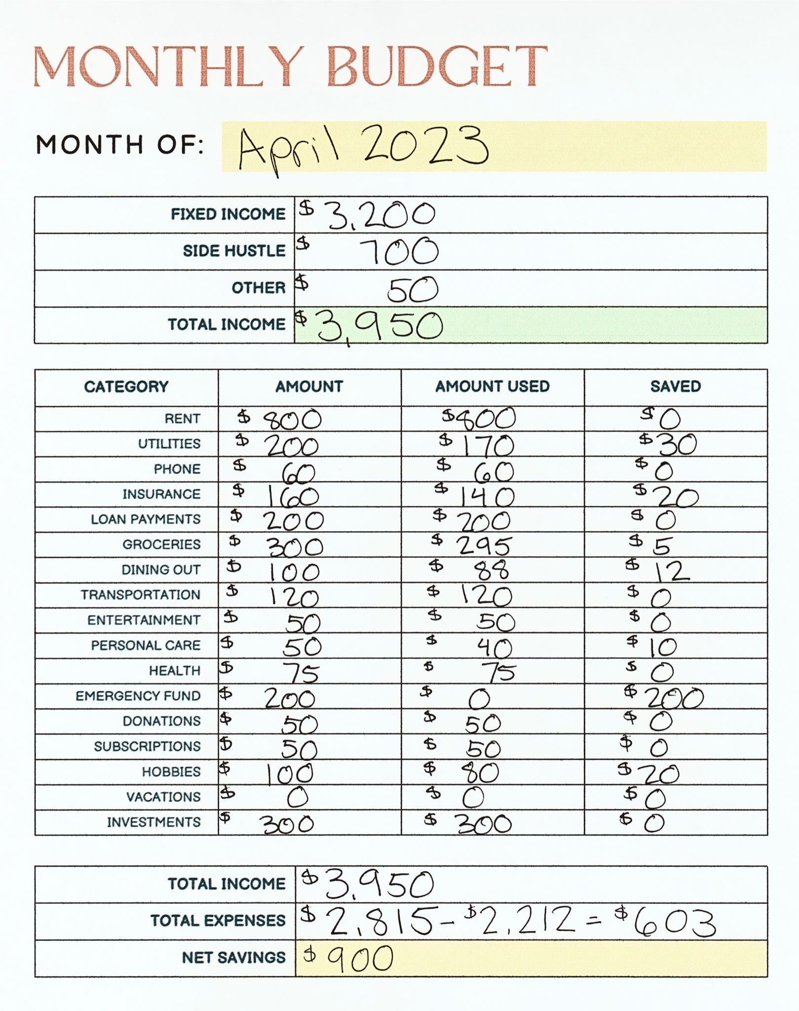 Monthly Budget Template - Fixed Income, Side Hustles & Modern Expense Tracker
